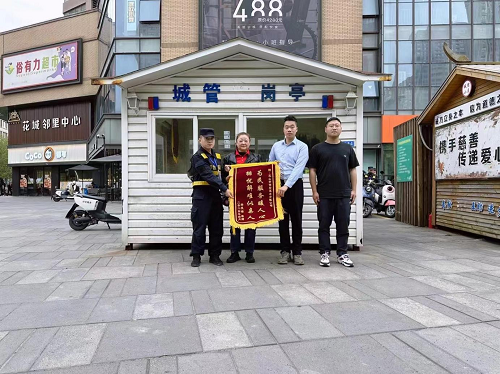 2024年5月13日下午15點(diǎn)左右,安保公司下屬保安公司花橋城市管理三中隊(duì)朱圣強(qiáng)與張寶平帶領(lǐng)隊(duì)員在昆山市花橋鎮(zhèn)萬科內(nèi)外街交界處巡查時(shí),張寶平發(fā)現(xiàn)在俗有力超市門口的一輛電瓶車的座椅上有一部手機(jī),隨即上前查看后發(fā)現(xiàn)是最新的蘋果手機(jī),隨即項(xiàng)目經(jīng)理朱圣強(qiáng)安排張寶平在電瓶車邊上等待失主,但是經(jīng)過半小時(shí)左右等待失主還未出現(xiàn),所以安排張寶平把手機(jī)放在身上等失主電話,下午4點(diǎn)多時(shí)候張寶平接到失主電話后,經(jīng)電話確認(rèn)以及指紋解鎖面部解鎖后歸還失主,失主表示說她最近才在萬科內(nèi)街開的燒烤店,之前北門外也有賣燒烤的流動(dòng)商販,后來我們隊(duì)員加強(qiáng)管理后賣燒烤的流動(dòng)商販來的少了,加上這次撿手機(jī)的事情,所以想要請(qǐng)大家吃飯表達(dá)感謝,項(xiàng)目經(jīng)理朱圣強(qiáng)隨即表示這是我們應(yīng)該做的,不用了吃飯了,隨后市民贈(zèng)送了一面錦旗表示感謝。