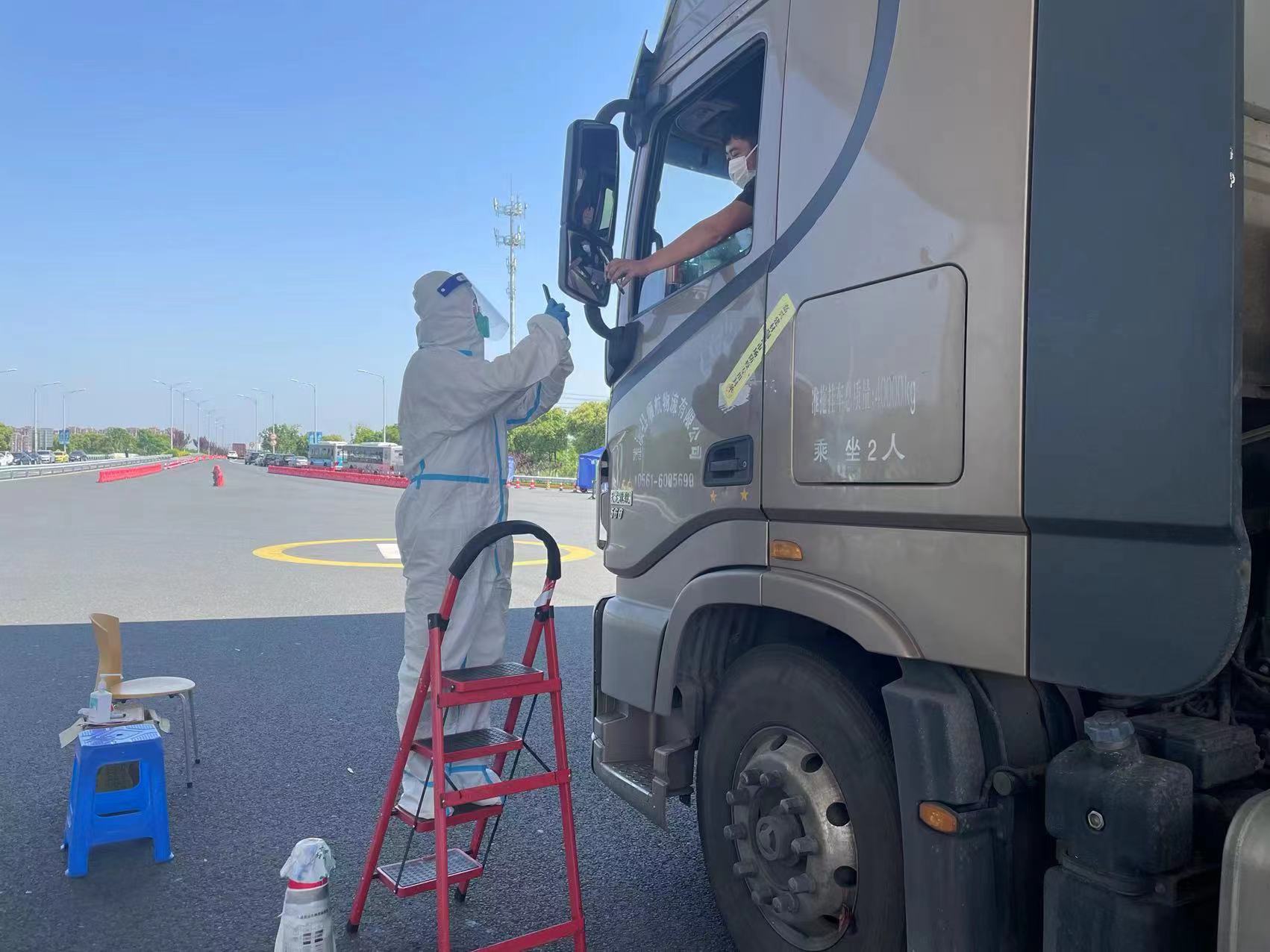 交通卡口是進(jìn)出昆山重要通道,隨著疫情防控要求不斷升級,公司女子中隊(duì)全體隊(duì)員主動請?jiān)福г魍ǖ揽?,配合交通運(yùn)輸部門做好來往車輛的查驗(yàn)工作。面對轟隆作響的大貨車,她們從不畏懼,工作過程中一些卡車車頭距離地面十分高,女隊(duì)員無法看到司機(jī)通行碼,她們就拿著凳子站上去核查。由于卡口車輛匯集,車輛噪聲大,她們常常要把聲音提高好幾個(gè)度,喉嚨啞了沒關(guān)系,她們繼續(xù)用手勢示意司機(jī)出示相關(guān)通行碼。余燕是公交乘務(wù)女子中隊(duì)的一名隊(duì)員,自投入卡口疫情防控工作以來,她每天天不亮就要起床,前往卡口投入工作,下班踏著夜色到家,孩子已經(jīng)熟睡。有一次,休息時(shí)跟孩子視頻,孩子天真的說:“媽媽,我很想你,我已經(jīng)很久沒有見過你了”。那一瞬間,她淚如泉涌,跟孩子說:“媽媽正在保衛(wèi)我們的家園,等疫情結(jié)束我們就能回家團(tuán)聚”。